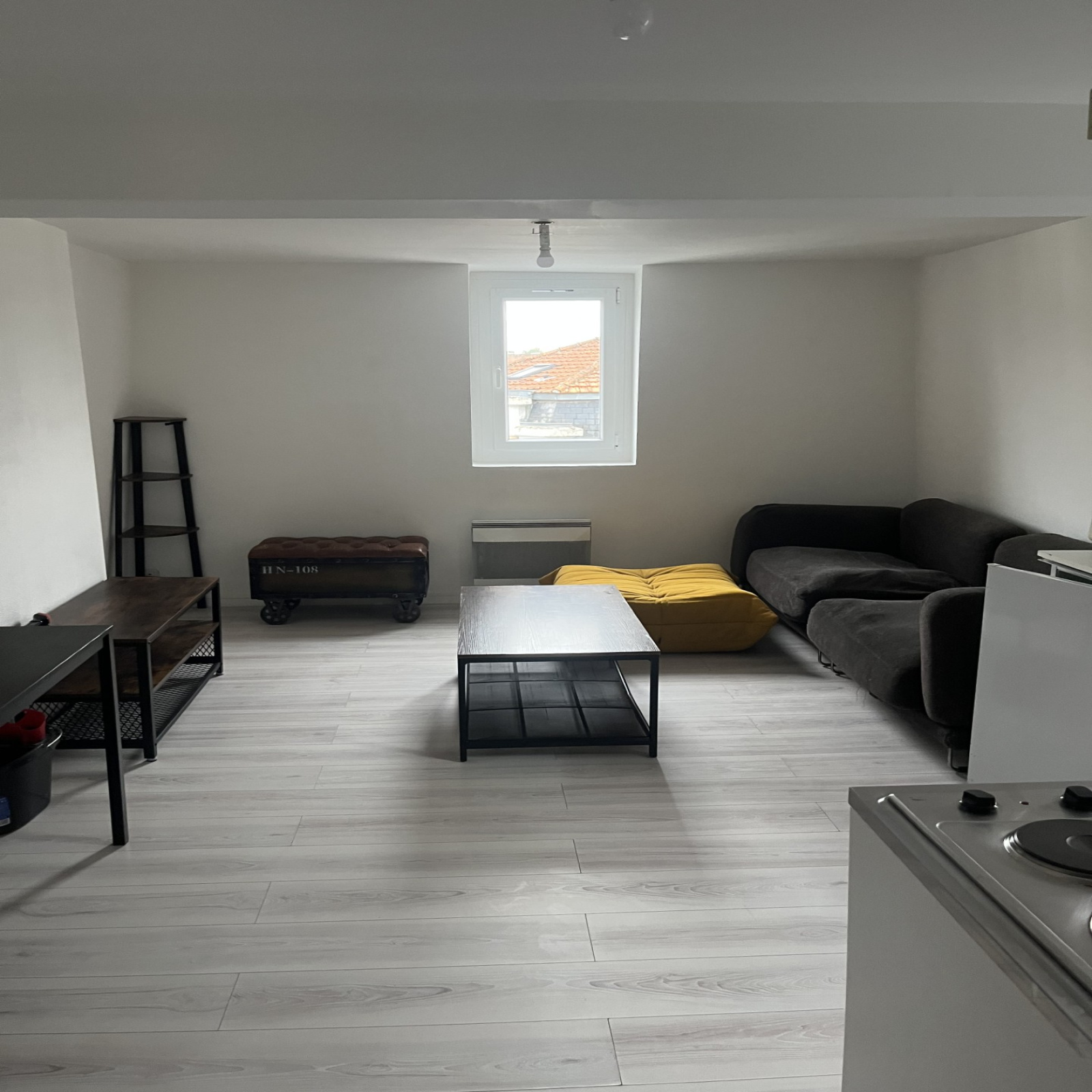 • Dernier étage : Studio indépendant meublé avec pièce à vivre, chambre, salle de bains et WC, loué en colocation.