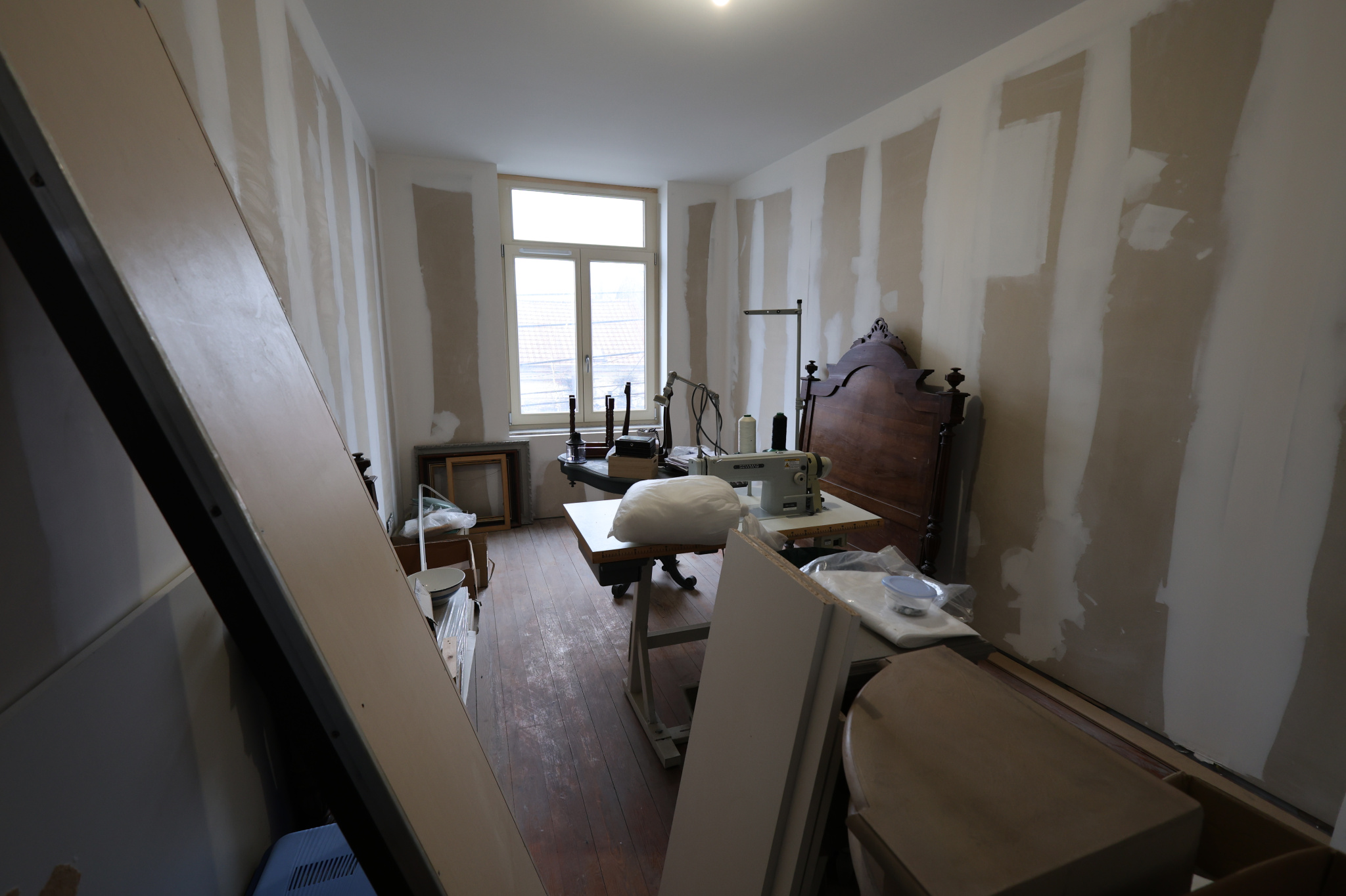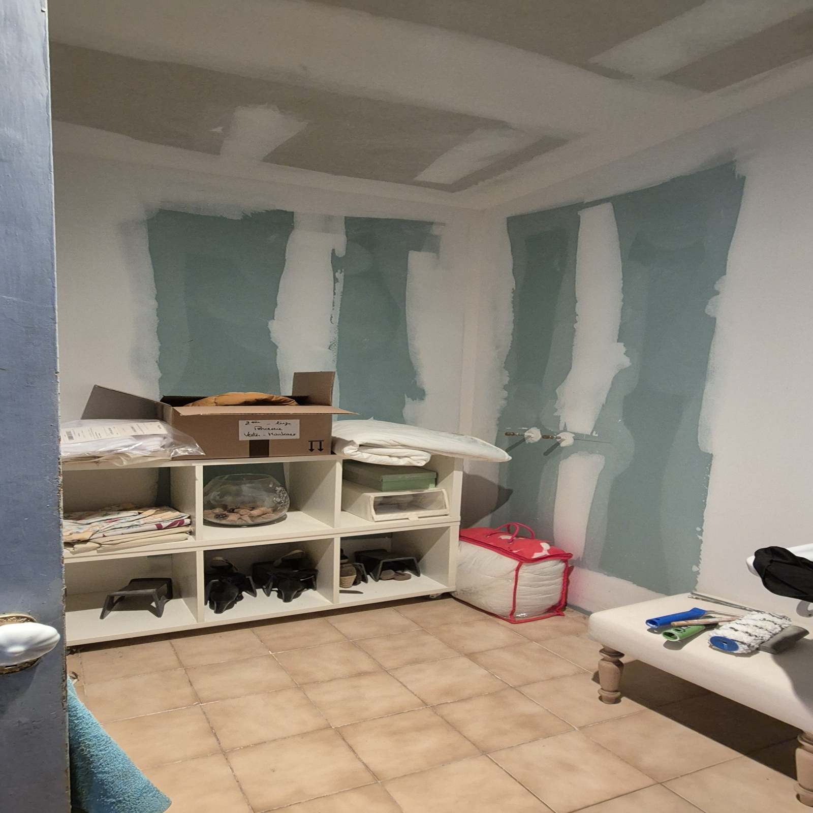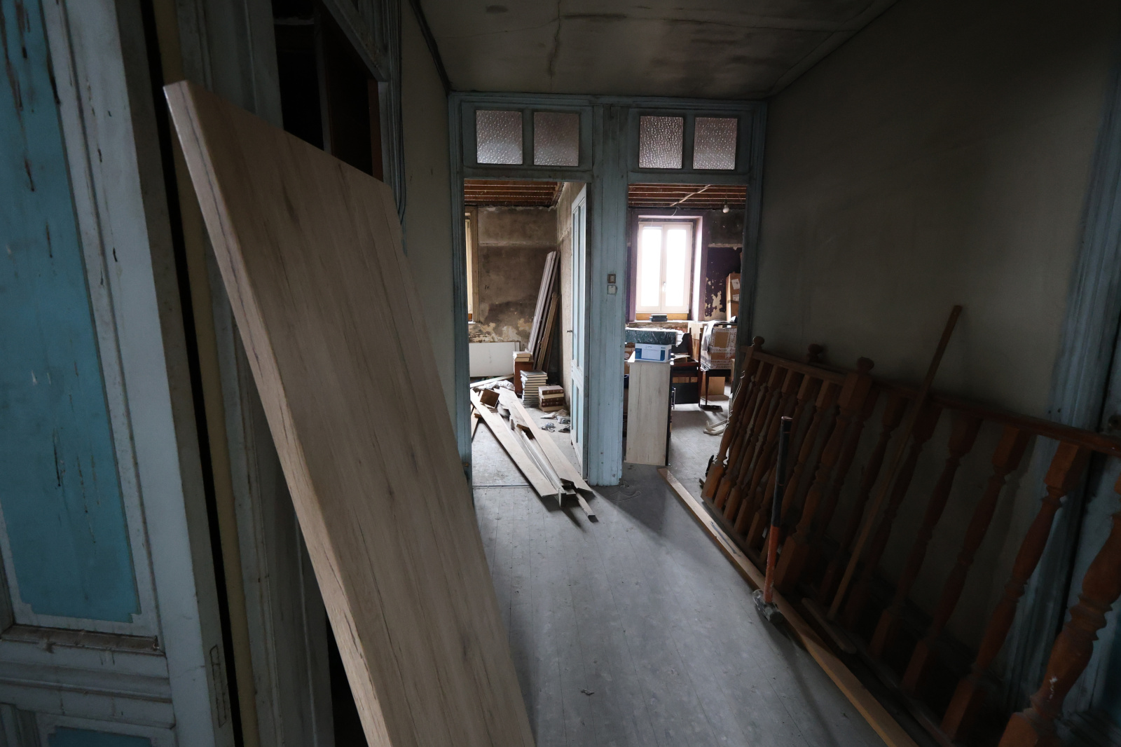 2ème étage – 65 m² rénovés, finitions à prévoir 3 chambres et salle de bains en cours d'achèvement (lavabo et branchements existants, alimentation douche/baignoire à finaliser).
