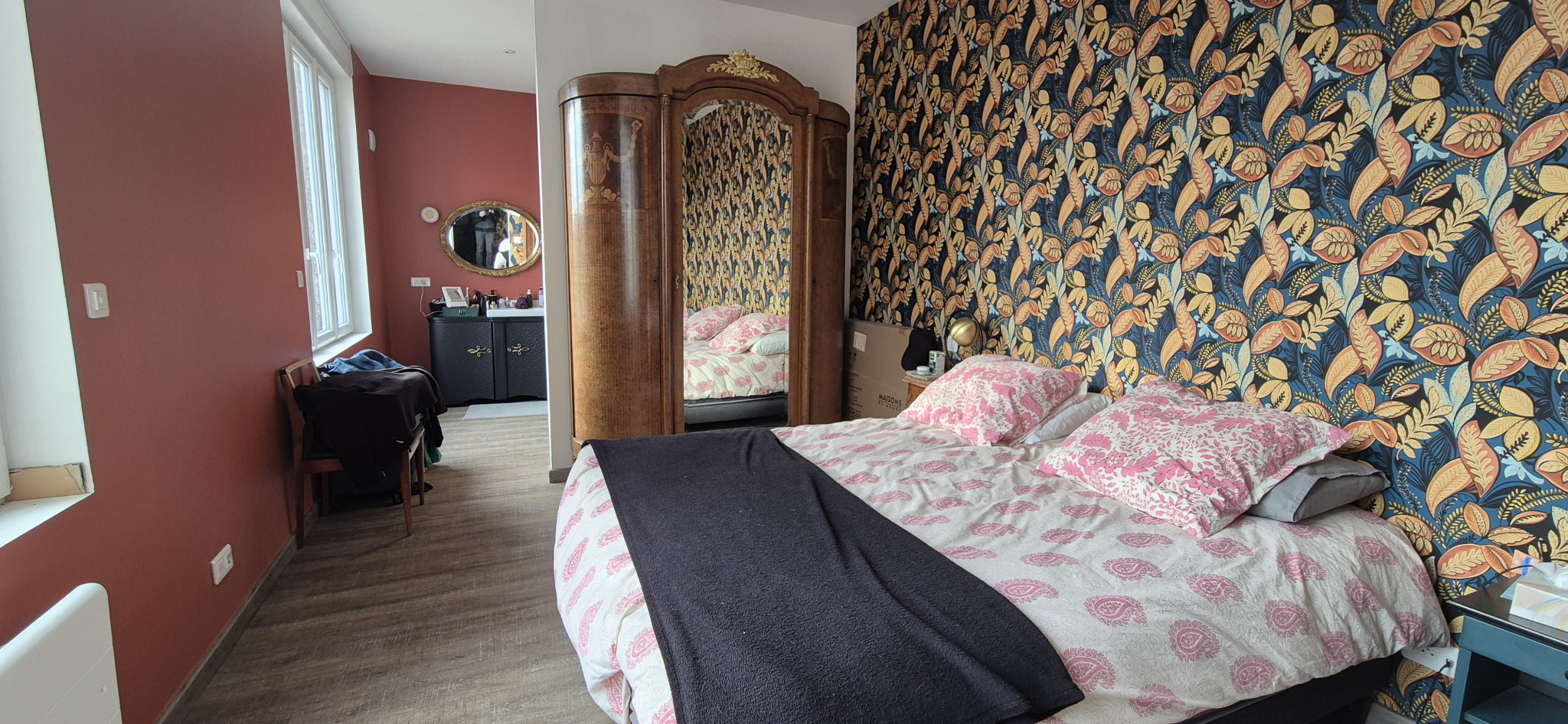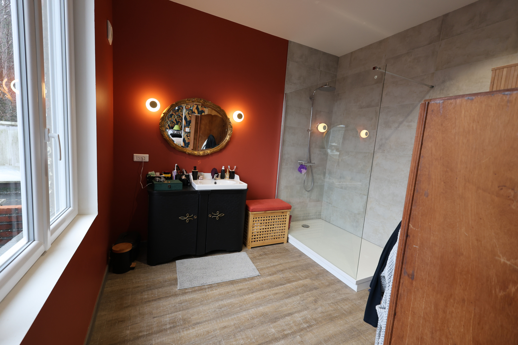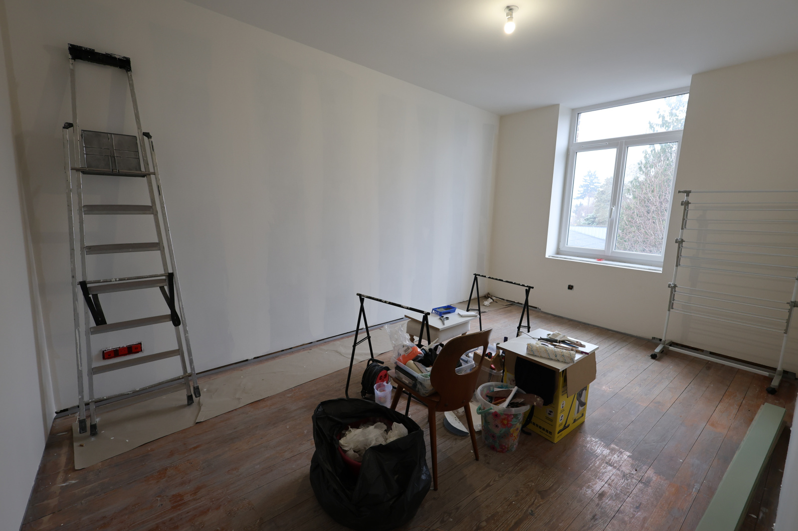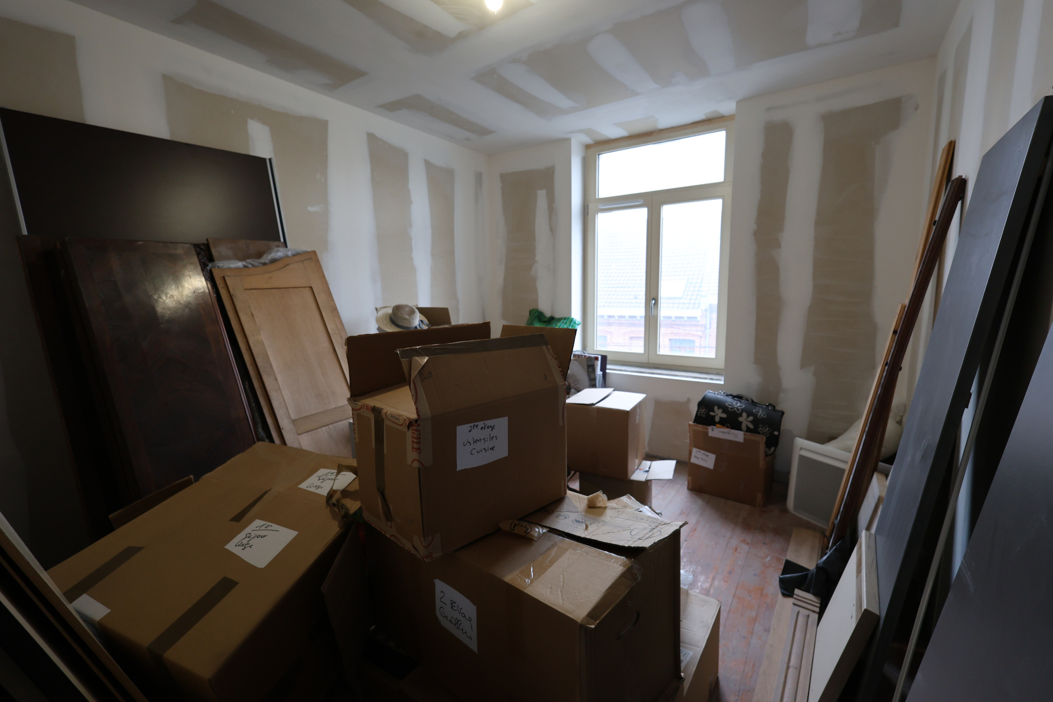 2ème étage – 65 m² rénovés, finitions à prévoir 3 chambres et salle de bains en cours d'achèvement (lavabo et branchements existants, alimentation douche/baignoire à finaliser).